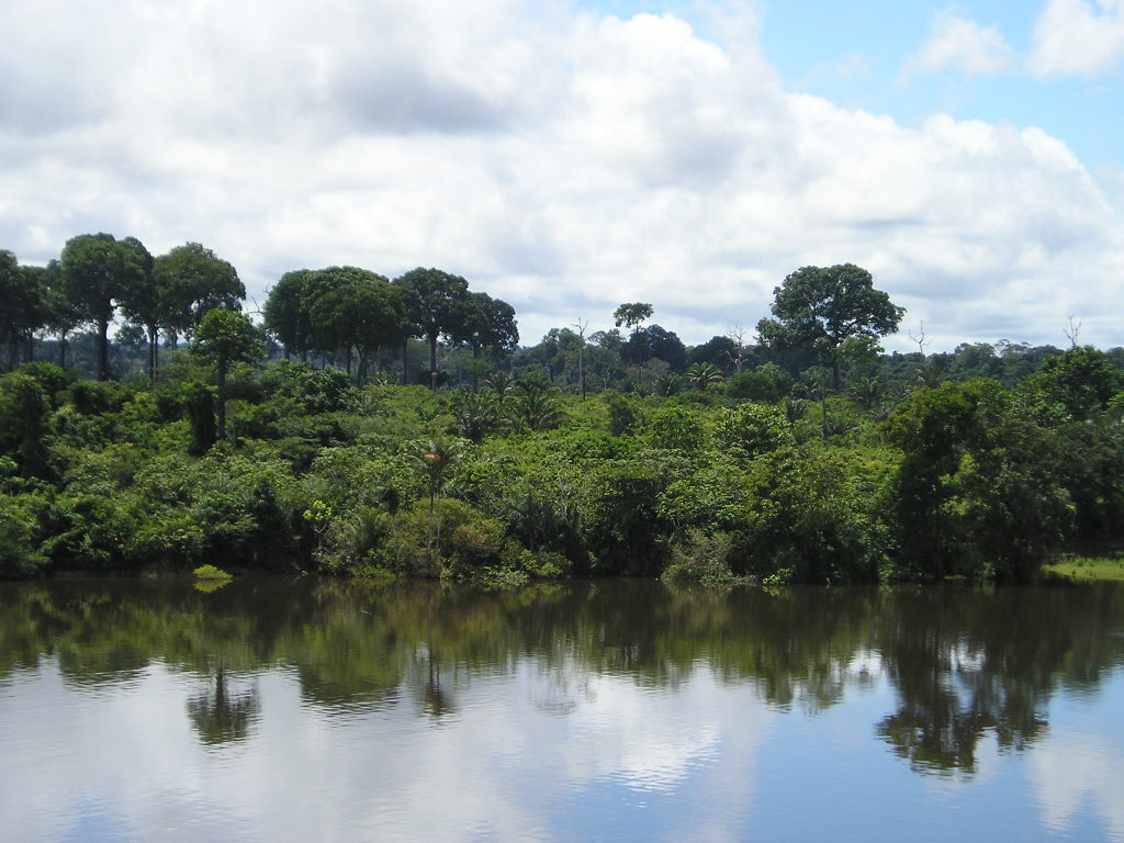 在下游興古河對(duì)面的北岸有許多平頂?shù)男∩?,延展大約有240千米。興古河以上的南岸是阿勒格爾山,一路的峭壁約束著亞馬孫河的河岸,直到圣塔侖,然后折向西南,形成另一條支流塔帕若斯河的河谷。