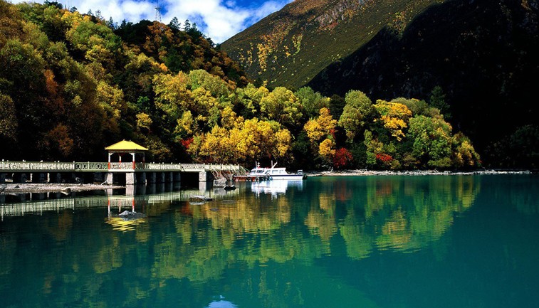 巴松措湖水清澈見底,四周環繞的雪山倒映其中。沙鷗、白鶴浮游湖面,湖水透明可見游魚如織,情趣怏然。每到春季,湖四周群花爛漫,雪峰陣列并倒影湖中,景色宜人至極。秋季萬山紅遍,層林盡染,天空碧藍如洗,火紅的楓葉折射燦爛的陽光,倒影在碧藍的湖面,景色美不勝收。距岸邊大約一百米處有一座小島名為扎西島,版權所有山東聊城聊之旅國際旅行社有限公司,轉載必究!傳說該島是“空心島”,即島與湖底是不相連而漂浮在湖水上的。雖然只是個傳說,卻讓人覺得蔚為神奇,你到島上也不妨試試在島的某些地方跺跺腳,看是否有空心的感覺。