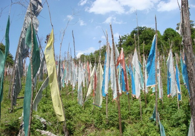 位于墨脫村南則瑪拉山上。是墨脫最大的寺院。建寺時間是在門巴東遷后不久,距今約8代人。據傳是由甘布寺中的活佛甘布建筑的,最初是一座有12面墻和東西南北四門的石木結構三層建筑,內有鍍金銅佛像多座。1950年毀于地震,后重修為東西兩門建筑。仁欽崩寺的建寺時間是在門巴東遷后不久,距今約8代人。這一建筑物很有特色,值得一看,寺院內外景色優美,古木鮮花將這里裝扮的古樸而典雅,讓人沉浸在這古老的文化和美麗的景色之中。