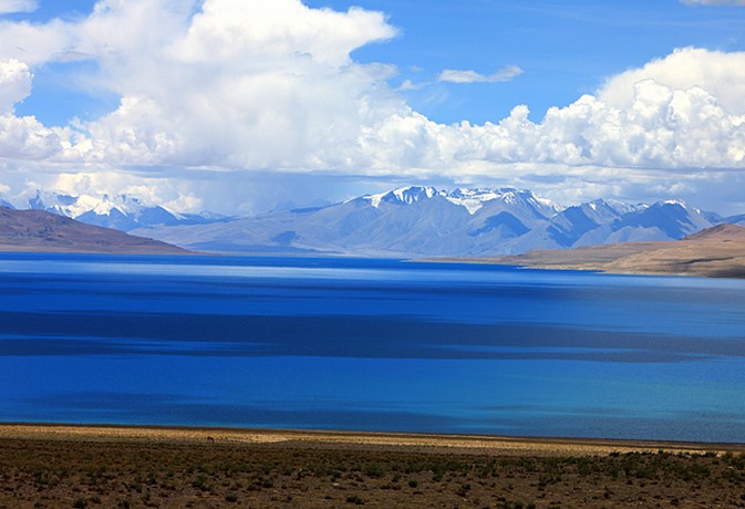 當(dāng)惹雍措是藏北著名神湖,它位于那曲地區(qū)的一個(gè)深陷的湖盆底部,它與當(dāng)惹雍措相毗鄰。當(dāng)惹雍措湖面形似一金剛杵,上圓中細(xì)下部長(zhǎng),四面群山環(huán)抱,南面的達(dá)爾果山山頂積雪終年不化。實(shí)際上當(dāng)窮措與當(dāng)惹雍措是在同一個(gè)湖盆之內(nèi),湖水未枯以前本是同一湖泊。這正是當(dāng)窮措名字的來(lái)歷,藏語(yǔ)里當(dāng)窮措即小的當(dāng)惹雍措之意。