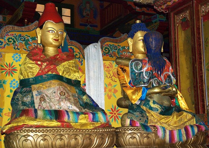 雍布拉康坐落在澤當(dāng)鎮(zhèn)東南約5公里的扎西次日山上,是西藏最早的宮殿。雍布拉康已有2100多年的歷史,3曾建筑。一層的前半部為門廳,面積33平方米,門廳處是一個(gè)帶檐的小平臺(tái)。后半部是佛殿,供奉松贊干布、文成公主等塑像。第二層亦分前后兩部分,前半部分為三面環(huán)繞矮墻的平臺(tái),后半部是帶天井的回廊。五世達(dá)賴?yán)飼r(shí)在碉樓的頂部加蓋了四角攢尖式金頂。雍布拉康除部分僧房外,還有一間曾供歷代達(dá)賴?yán)飦泶硕Y佛時(shí)居住的臥室。