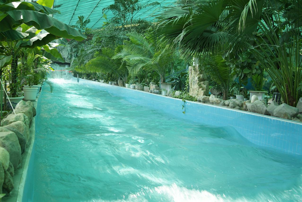 龍脈溫泉度假村總占地280畝,環(huán)境優(yōu)美,空氣清新,地下蘊藏著國內首屈一指的淡溫泉,地熱資源豐富。度假村內有四星級標準的溫泉大酒店和環(huán)境幽雅的度假會所,共有標準間、溫馨公寓、家庭套房、豪華別墅、總統(tǒng)套房等客房500余套;有會議設施齊全的大小會議室30余個;7個風格獨特的中餐廳提供由名廚主理的川、魯、粵等多種美味佳肴,在西餐廳內,可享受到純正的各國精美大餐;亞洲最大的室內溫泉娛樂宮內,熱帶