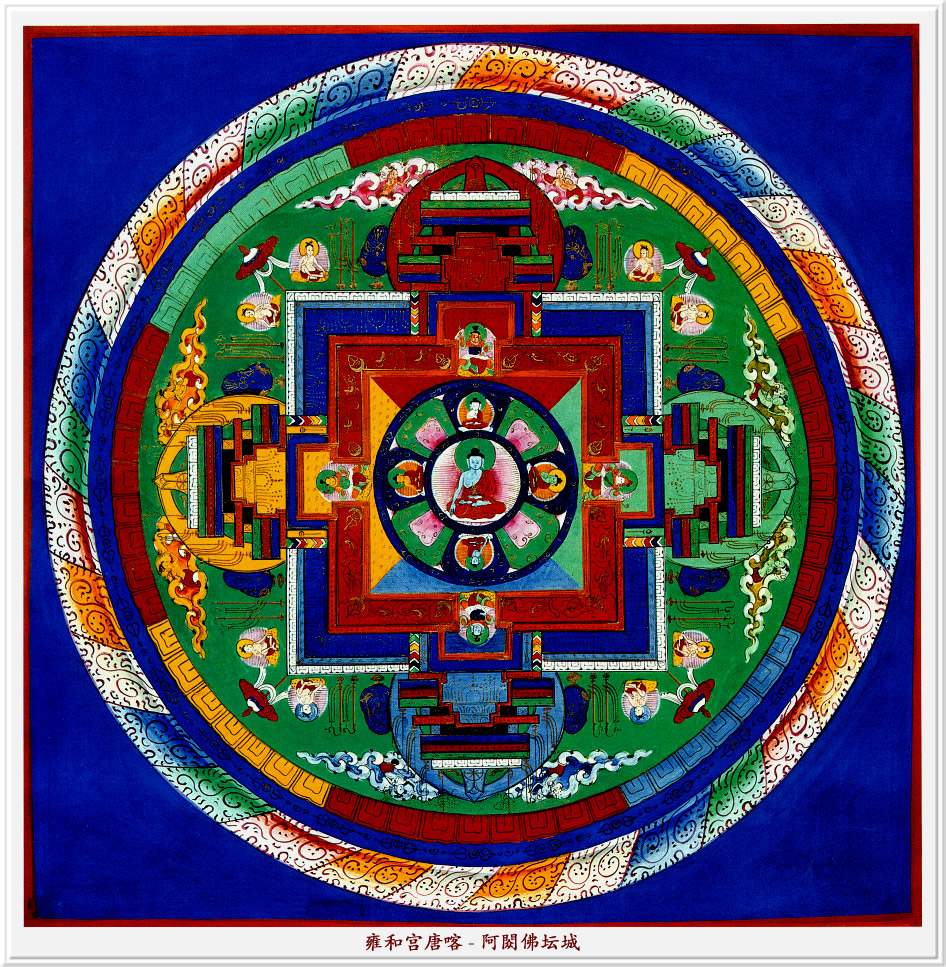 雍和宮萬福閣東廂的照佛樓,原是乾隆生母供佛之處。那里陳列著兩幅畫像:旃檀佛畫像和「六道輪回圖」。佛教是主張眾生平等的,認為世世代代的人處于不停的車輪般的回旋之中,機會均等。人死了以后,來世有六種「出路」:或為天神,或為人,或為阿修羅,或為畜生,或為餓鬼,或下地獄。《長阿含經》說,人在來世的歸宿,主要看現世的表現,如積善德,下等種姓下世可成為上等種姓;如劣跡斑斑,上等種姓下世也會成為下等種姓,甚至淪入地獄,這一切就是佛教所說的「輪回」。「六道輪回圖」繪一個長爪三眼、形如黑熊的巨大怪物坐在地上,抱著一個大車輪形的圓圈。圓圈四周彩繪各種人物和燒、殺、奸、詐、劫、盜、吃、喝、嫖、賭等惡行劣跡。幾股氣流將圓輪分成六道。第一道內五色云端中宮闕巍峨,宛若仙境,稱「天道」;第二道內市井社會,平民百姓,稱「人道」;第三道內硝煙四起,有水、火、旱、澇,稱「阿修羅道」;第四道內男女鬼怪,口內生煙,骨瘦如柴,正受嚴刑拷打,稱「餓鬼道」;第五道內豬狗牛馬、魚介昆蟲,稱「畜生道」;第六道內刀山冰谷,火海煉獄,鬼怪在受煎熬,稱「地獄道」。此圖形象地儆戒世人要「諸惡莫作」,「眾善奉行」,以達到勸惡從善的目的。