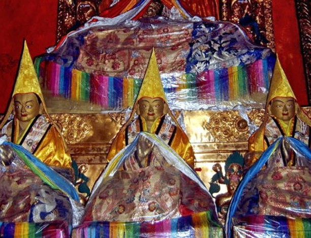 傳說格魯派宗師宗喀巴16歲時由青海到拉薩學經途中,路過這兩水交匯的秀美之地時預言這里將是弘揚佛法之地。后在1444年由宗喀巴的晚年弟子西饒桑布在此歷時八年建成。建寺時西饒桑布在一千戶家去講經化緣,該千戶就將自己家的草場奉獻了出來作建寺之址。據說現在寺廟五大扎倉之一的桑堆扎倉的位置,就是當年千戶搭牦牛帳篷的地方。