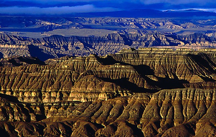 立于盆地之中,旅者可以深深體會到大自然的偉力,更為它的造化所震撼。這扎達盆地里獨特的自然地貌、這地球上規模最大的一片土林;峽谷與土林層層疊疊,綿延不絕。這是一種獨特的“水平巖層地貌”,是高平的山頂被縱向切割侵蝕成的一條條深深的溝壑,變成了土的林海,但人們更愿意相信,這是一種藝術,一種大地的藝術,就好像是大自然特意造出來、專門是為了向人類展示其魅力似的。這就不難理解為什么那么多的各學科的科學工作者——包括人文工作者——都迷戀著扎達的土林。