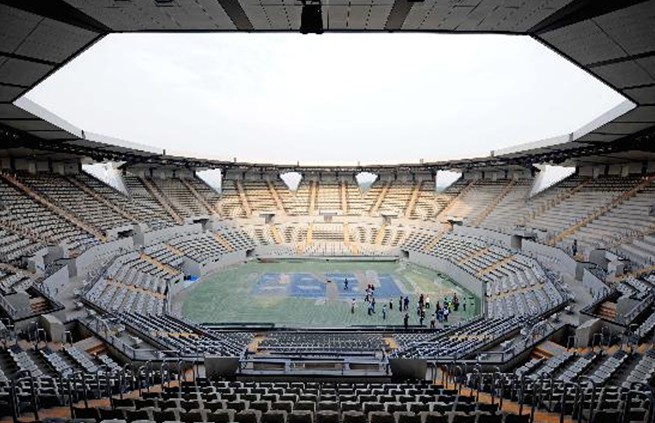 中心賽場是網球中心里最大的一朵“花”,48根傾角達到42度的現澆鋼筋混凝土懸挑斜梁,斜長約17米,每根自重達到62噸。版權所有山東聊城聊之旅國際旅行社有限公司,轉載必究!正是這48根巨大的懸挑斜梁撐起了12瓣花瓣,奧運會網球決賽時,將有10000名觀眾坐在這蓮花之中觀看巔峰對決。