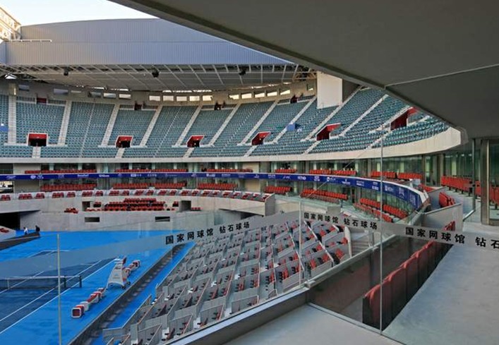 網球中心建設負責人孫彥朝說,網球中心設計時保留了“清水混凝土”的本色,不加任何裝飾,很好地與森林公園的綠色映襯起來,效果非常漂亮。