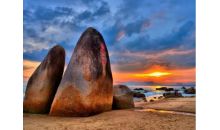 夜宿島上,可聽潮聲,觀漁火,看星星,是看海上日出的好去處。游客可在這里感受曾經(jīng)荒無人煙的島嶼風(fēng)情,并可在無人島上暢游與冒險(xiǎn)。乘快艇到島上僅需3分鐘。沿著由鑿有國(guó)內(nèi)外各個(gè)朝代古幣的花崗石鋪成的“錢路”拾級(jí)而上,但見石峰林立,峭壁萬仞,奇樹簇?fù)怼R恍┨烊皇灞还谝?ldquo;風(fēng)動(dòng)石”、“烏紗帽”、“大洞天”和“菩薩洞”等美名。站在山頂,分界洲島周圍海水清澈,與沙灘相銜接,構(gòu)成了畫家所不及的天然畫卷。