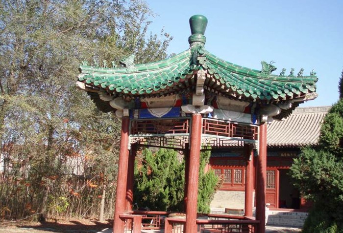 寶云寺內(nèi)有一塔,高36.5米,塔體為八面棱錐體磚木結(jié)構(gòu),自四層以上四面有門,塔的各層建筑風(fēng)格各異,或成鴛鴦斗拱,或成梅花斗拱,雄渾古樸,氣勢磅礴。若登塔頂,需有一定的勇氣,因?yàn)槊康且粚佣家@塔沿半圈,找到另一側(cè)的入口。