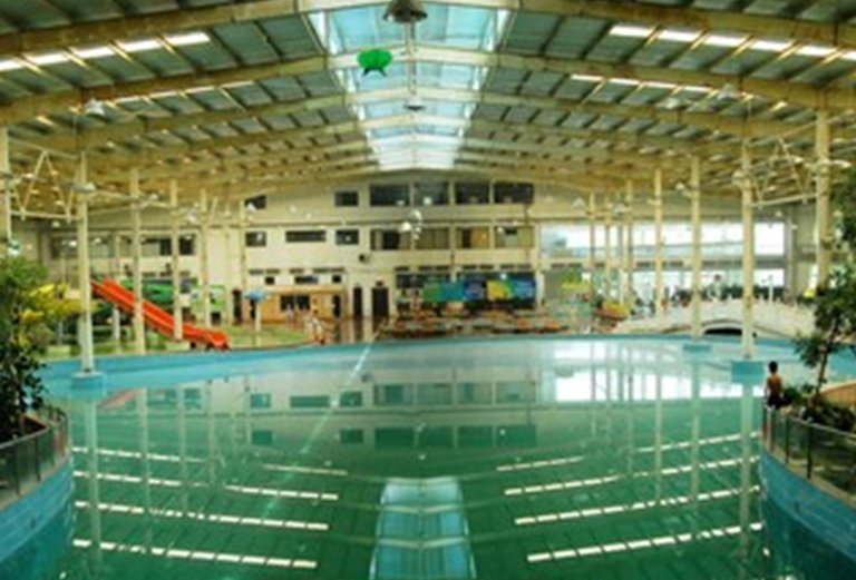2005年,投資6000余萬元的溫泉城建成,并于當(dāng)年11月19日投入使用,其規(guī)模居山東乃至周邊省市之首,封閉建筑面積2萬余平方米,城內(nèi)環(huán)境幽雅別致,池周有形態(tài)各異的南方園林樹木,廳中有城,城上有數(shù)不盡的奇花異草,池邊有亭、古羅馬式圓亭古樸莊重,赤色巨石層巒疊翠,青色圍墻千姿百態(tài),漢白玉小橋如月似虹,沖浪池巨龍活靈活現(xiàn)。池中有池,園中有園,山中有池,池中現(xiàn)島。彎彎曲曲的半圓形滑道把樓池連為一體。由淺入深的巨大沖浪池,占據(jù)大廳中央,波濤洶涌,浪花飛濺,水能習(xí)性強(qiáng)的人在深水處或被托向浪尖,或被踮入浪谷, 帶給我們海邊的感覺;頑皮的兒童坐在池邊不斷用雙手迎著浪花,與水相戲;溫泉池里,一排排按摩床在岸邊或隱或現(xiàn),泉水相繼噴涌,躺在上邊,比器械按摩更舒心,更愜意。右邊,斜面噴泉似箭,形成一片白色,身體靠過去,萬點(diǎn)熱水滴直擊身體,一身的疲勞頃刻間化為烏有。 溫泉城內(nèi)共設(shè)30個(gè)洗浴池,豪華標(biāo)準(zhǔn)化的游泳比賽池,可舉辦大型項(xiàng)目比賽,兒童游泳池,幼兒戲水池,藥泉池,泡沫池,情人按摩浴,旋渦池、日本魚療池、花浴池等一應(yīng)俱全,另設(shè)國(guó)內(nèi)一流的滑道及桑拿,搓澡、棋牌、乒乓球、臺(tái)球等應(yīng)有盡有,讓你一天疲苦得到放松,并以愉快的心情去迎接明天。