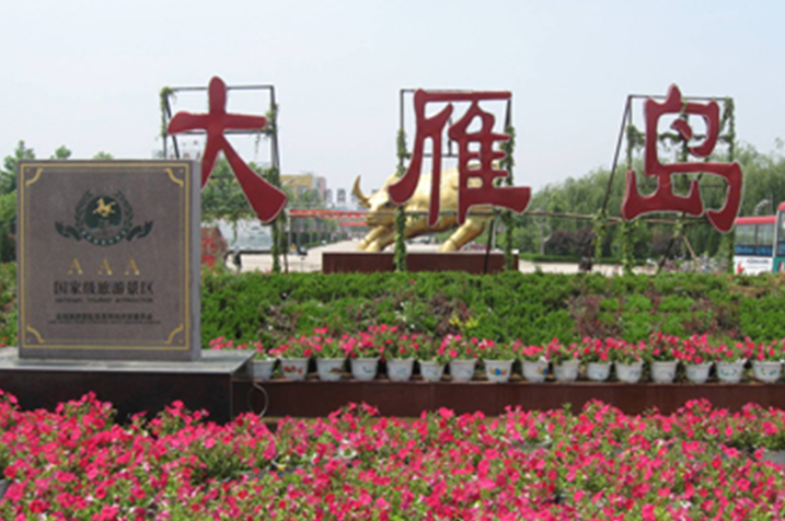 一座占地200余畝的江南園林式建筑——大雁島綠色生態(tài)園,集住宿、娛樂、餐飲、旅游為一體,不但有動(dòng)物園、果園等游玩之地,更有德州最大的溫泉游泳大廳。還有美麗的大雁湖、清幽的 音樂臺(tái)等賞玩去處,占地15畝的酒店大廳,數(shù)百種海南及國(guó)外植物郁郁蔥蔥,假山瀑布、小橋流水、亭廊樓閣應(yīng)有盡有。2005年,投資6000余萬元的溫泉城建成,并于當(dāng)年11月19日投入使用,其規(guī)模居山東乃至周邊省市之首,封閉建筑面積2萬余平方米,城內(nèi)環(huán)境幽雅別致,池周有形態(tài)各異的南方園林樹木,廳中有城,城上有數(shù)不盡的奇花異草,池邊有亭、古羅馬式圓亭古樸莊重,赤色巨石層巒疊翠,青色圍墻千姿百態(tài),漢白玉小橋如月似虹,沖浪池巨龍活靈活現(xiàn)。池中有池,園中有園,洞中有池,池中現(xiàn)島。彎彎曲曲的半圓形滑道把樓池連為一體。由淺入深的巨大沖浪池,占據(jù)大廳中央,波濤洶涌,浪花飛濺,水能習(xí)性強(qiáng)的人在深水處或被托向浪尖,或被踮入浪谷,歡聲笑聲一片;頑皮的兒童坐在池邊不斷用雙手迎著浪花,與水相戲;溫泉池里,一排排按摩床在岸邊或隱或現(xiàn),股股泉水噴涌,躺在上邊,比器械按摩更舒心,更愜意。右邊,斜面噴泉似箭,形成一片白色,身體靠過去,萬點(diǎn)熱水滴直擊身體,一身的疲勞頃刻間化為烏有。