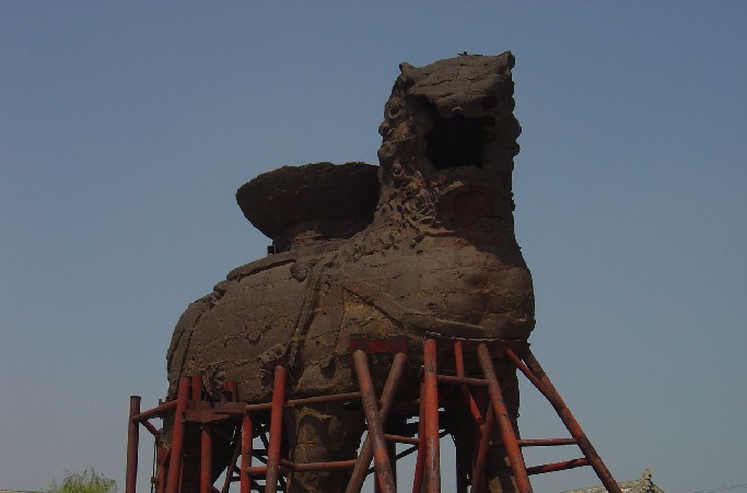 滄州鐵獅子位于滄州市政府駐地東南偏北16.5公里。坐落在東關村西0.5公里處。鐵獅身高5.78米,長5.34米,寬3.17米,體重約50噸。背負巨盆相傳是文殊菩薩蓮坐,獅身向南,頭向西南,兩左腳在前,兩右腳再后,呈前進狀,姿態(tài)雄偉,昂首闊步,徐徐如生鐵獅是我國大型的驚巧鑄鐵工藝。也是我國著名發(fā)源的古跡。距今已有一千多年的歷史,它充分的顯示出我國古代勞動人民的智慧和藝術才華。解放后鐵獅子受到了黨和政府的重視與保護,國務院首先把它列為全國第一批重點文物保護單位,并且對它進行各種的修繕。