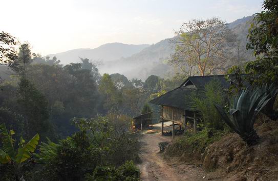基諾族的山寨,多建于山頂或半山腰上,山寨周圍和寨中無(wú)一塊平地,四周森林環(huán)繞,有著獨(dú)特的熱帶雨林奇觀。這帶方圓幾十公里是國(guó)家自然保護(hù)區(qū),在這些山寨旅游,時(shí)常遇到各種動(dòng)物從林中來(lái)尋食,聽(tīng)到多種鳥(niǎo)啼鳴,這時(shí)心情為之一暢。冬季大霧覆蓋山寨,當(dāng)太陽(yáng)出來(lái)后,山頂?shù)纳秸嗡茟以诳罩校媸敲谰罢T人。