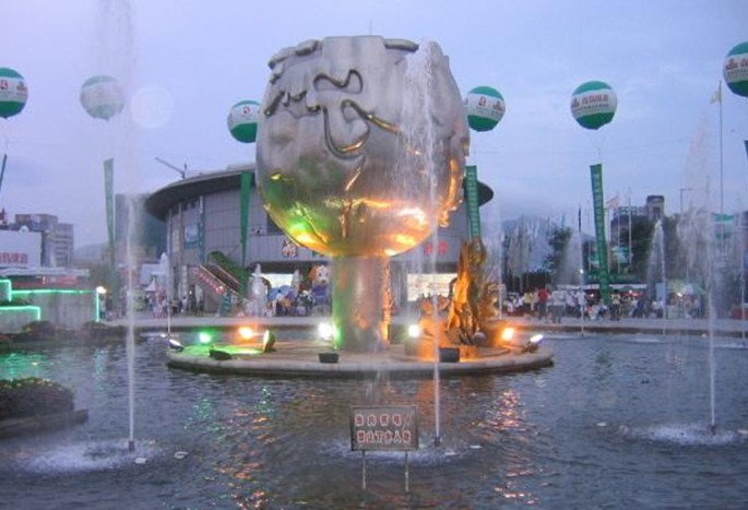 走進啤酒城大門,可見高大的標志性雕塑--溢滿全球。雕塑由一個大型高腳杯矗立于圓形的水池中央,高腳杯被做成為世界地圖的圖案,啤酒沫從杯中不斷地溢出,上有青島啤酒商標,寓意深刻。水池后面有一半月形石壁,上書“國際啤酒城”.夜幕降臨,彩燈、噴泉、水柱交互輝映,無比絢麗。
