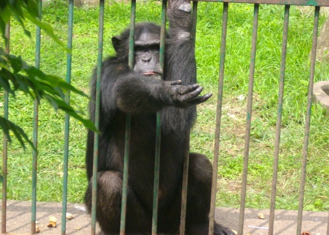 2.青島動物園靈長類動物展區:猩猩館:阿拉伯狒狒、黑猩猩、山魈。