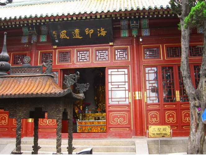 藏經(jīng)閣建在4米多高洞形的山門之上,呈方形;閣高8.2米,闊13.8米,深8米。閣中央大應(yīng)立四棱形石柱,木構(gòu)架為抬梁式屋頂,是重檐歇山式。登閣遠(yuǎn)看,浩浩湯湯的大海直入眼底。西南群峰林立,閣下松竹青翠。從山門到海濱,通有石砌盤道,名為華嚴(yán)路,路旁林木茂盛,怪石嶙峋,可坐可依,游人多在石上題刻。版權(quán)所有山東聊城聊之旅國(guó)際旅行社有限公司,轉(zhuǎn)載必究!山門外有塔院一處,內(nèi)有九級(jí)磚塔,為該寺第一代住持僧慈沾墓塔。二蒼松幡屈環(huán)抱塔身,名曰“松抱塔”。