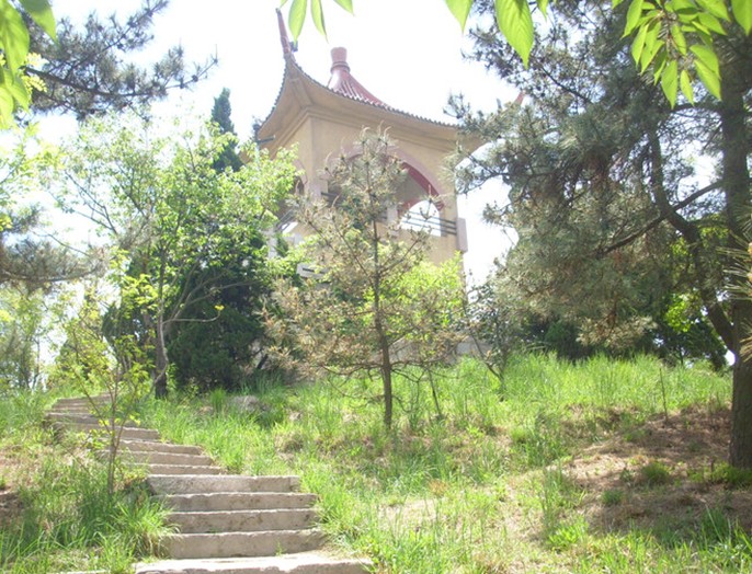 園內有3處建筑十分引人注目,一座是“玫瑰園”,這是1936年孔祥熙修建的別墅,它粉墻紅頂,花崗巖墻壁上,鑲嵌一尊大型花崗巖獅頭浮雕,可想見當年主人地位的顯赫。離此不遠的山脊上,有一座二層方閣,翹角飛檐,黃色琉璃覆頂,名為“觀濤閣”登上此閣島城秀色可盡收眼底。北端山脊鞍部有一座新建的古堡式別墅,藍瓦黃墻、拱頂涼亭,堪稱青島近年建筑藝術的杰作。