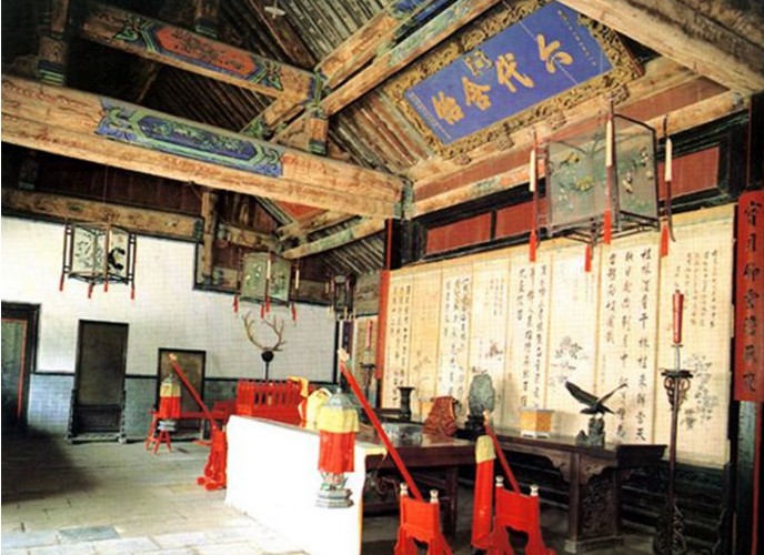 三堂也叫退廳,當年衍圣公就是在這兒接見四品以上官員和處理家庭內(nèi)部糾紛、處罰府內(nèi)仆役的。屋內(nèi)正中高懸著意為六代人和睦相處,版權(quán)所有山東聊城聊之旅國際旅行社有限公司,轉(zhuǎn)載必究!生活美滿的“六代含貽”匾額,為乾隆皇帝手書,當時孔府六代同堂。