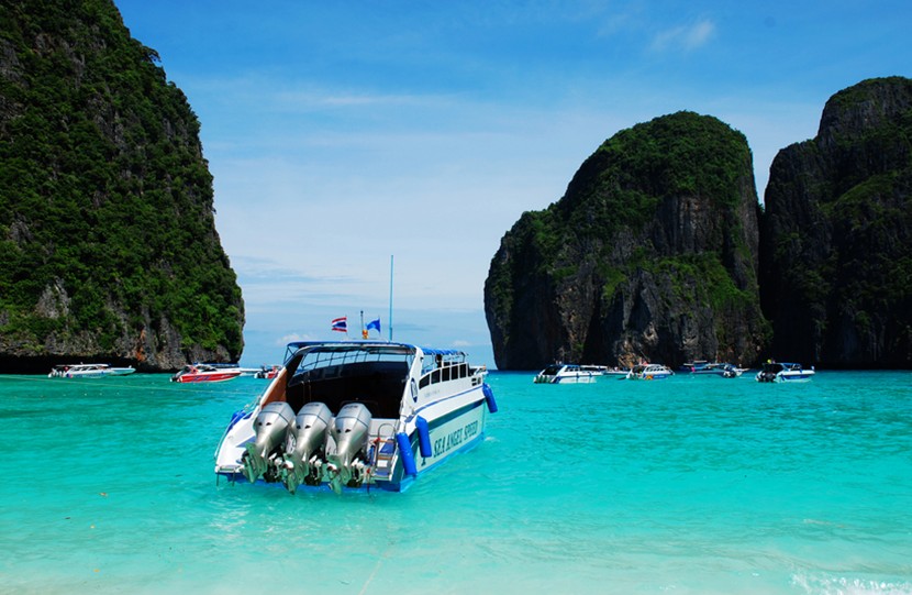 由各種途徑抵達普吉或甲米之后,終于可以乘船前往皮皮島了。如果游客在普吉的旅游代理店預定船票,可乘坐代理店的的小巴(Mini Bus)直達碼頭,普吉的詩里島碼頭(Ko Sirey)、馬堪灣碼頭(Makham Bay)、查龍灣碼頭(Chalong Bay)都有船只開往皮皮島,船費250泰銖左右,航行時間約2小時;在甲米市區,有小巴和出租車前往海邊碼頭,可以在趙發碼頭(Jao Fa)搭船前往皮皮島,航行時間約1小時30分。