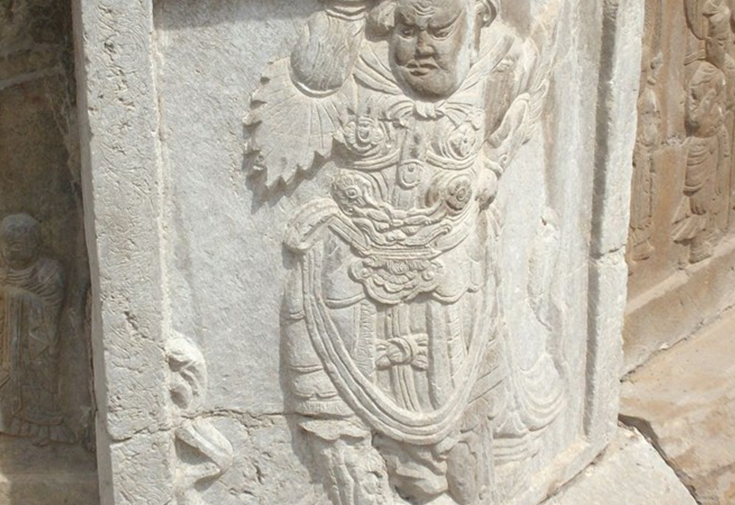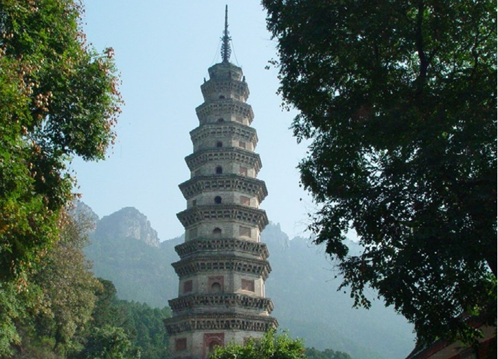 “辟支”出于佛教,音譯為“辟支迦佛陀”,略稱“辟支佛”,辟支塔,意即辟支佛塔。辟支塔為一座八角九層樓閣式磚塔,塔高55.7米,塔基為石筑八角,上有浮雕,鐫刻有古印度孔雀王朝阿育王皈依佛門等故事。塔身為青磚砌就,各層皆施腰檐,下三層為雙檐,二至四層檐下置平座。塔檐與塔徑自下而上逐層遞減,收分得體。塔內(nèi)一至四層設(shè)塔心柱,內(nèi)辟券洞,砌有臺階,可拾級而上,自第五層以上砌為實體,登塔須沿塔壁外腰檐左轉(zhuǎn)90度進入上層門洞。塔身上置鐵質(zhì)塔剎,由覆缽露盤、相輪、寶蓋、圓光、仰月、寶珠組成,自寶蓋下垂八根鐵鏈,由第九層塔檐角上的八尊鐵質(zhì)金剛承接,在塔內(nèi)延續(xù)到地下,起避雷作用。辟支塔氣勢雄偉、造型美觀、結(jié)構(gòu)復(fù)雜、比例適當(dāng),呈典型的宋代風(fēng)格,為靈巖寺標(biāo)志性建筑。宋代文學(xué)家曾鞏有詩贊曰“法定禪房臨峭谷,辟支靈塔冠層巒”。