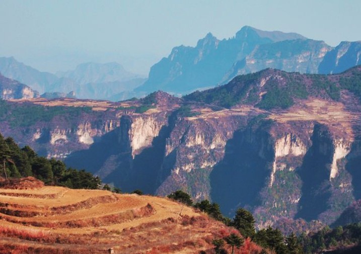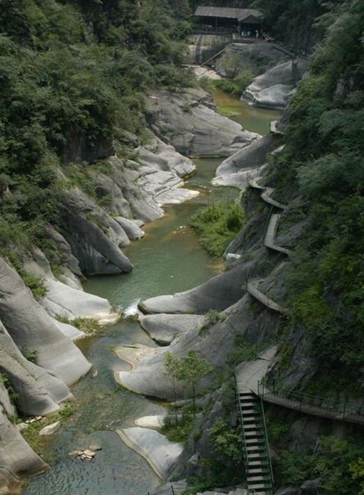 《太平御覽》講:“抱犢山,在上黨東南,高七十丈。” 《隋圖經》則說:“抱犢山四面危絕。”公元4世紀初時,我國兩晉時期著名的道教神學奠基人葛洪(自號抱撲子)曾遍游天下名山。他對太行懷抱中的抱犢山評價甚高,以為“稱天下名者,南有武夷,北有抱犢。”把紫團山與武夷山相提并論,這對當代人來講,無論如何是無法想象的事情。因為今天的紫團山其名聲不但已遠不如聲名顯赫的南國武夷,僅以武夷九曲溪那樣秀麗可人且可乘舟游弋的水景而言,即使走遍今日太行峽谷中的每個角落,恐怕也難以覓得一處了。然而,再把話說回來,你如果真是一個對紫團山的歷史有所了解的人,特別是對它的地形地貌做過實地踏勘的人,你則會毫無猶疑的確信,確信葛洪在1500余年前所說的那一番話不但語出事實,而且語焉甚確,毫無夸張?,F在武夷九曲溪水及其所經山峽長度約近8公里,歷史上可能更要綿長些;但紫團山峽中的河床谷地其長度絕不在20公里以下。根據歷史上遺存地貌的觀察分析,古代武夷九曲溪和紫團山峽流景觀的主要區別應該在于,武夷九曲溪河谷趨于平緩開闊,而紫團峽流由于峽身緊束,區段落差極大,所以后者比前者肯定會流速迅疾,景色險奇而壯觀。在溪流盤曲環繞、岸側景色變幻無窮這一點上,兩處名勝則是相似相近的。
