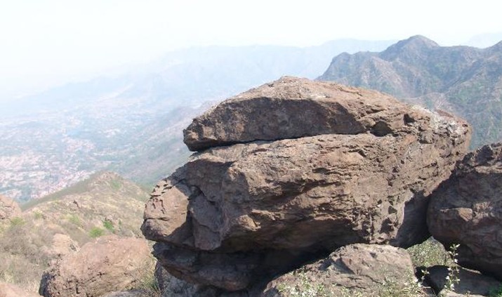 摩訶山峻峰雄峙,大壑深澗,巨石危巖,奇險(xiǎn)莫測(cè)。頂峰聳入云中,舊曾建有塔和禪院,皆失無考,僅存遺址石墻,尚能勾起人們對(duì)其原貌的想象。據(jù)傳山頂寺中,原有一小和尚,腦力遲鈍,數(shù)日僅學(xué)“摩訶”二字。冬天,和尚們下山募化,僅留其守寺,不留食物,待月余歸,但見小和尚仍面色紅潤,問其,則曰:口不絕吟“摩訶”,饑則煮石,食之甘美。“摩訶”山名即由此而得。
