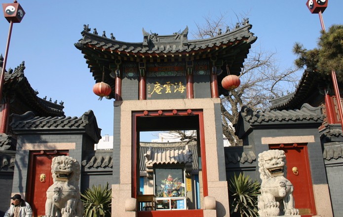 海云庵是四方民俗旅游區(qū)的重要景點(diǎn),為青島著名的明代建筑,占地800平方米。一進(jìn)院落,外以灰垣相圍,內(nèi)有大殿、東西配殿、東西廂房和鐘樓、鼓樓。庵內(nèi)一株高大的古銀杏枝繁葉茂,環(huán)境十分清靜。庵內(nèi)大殿供奉觀音大士,左右配殿分別供奉龍王、關(guān)公、比干、老君、魯班等。1923年重修時(shí),增建鐘、鼓樓各一座,近年又在庵前辟建廣場(chǎng),是青島市區(qū)唯一一座開展宗教活動(dòng)的道教廟庵。海云庵自建成以來(lái),香火一直旺盛,尤其每年正月十六廟會(huì)期間,四鄉(xiāng)八鄰趕廟進(jìn)香,熱鬧非常。廟會(huì)上尤以鄉(xiāng)親們用山楂、紅棗、山藥、桔子制作的各式糖球?yàn)樽疃啵熘饾u形成了以糖球?yàn)樘厣膫鹘y(tǒng)廟會(huì),人稱"海云庵糖球會(huì)"。