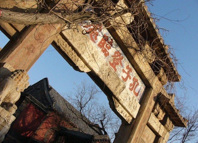 此坊聯(lián)在一天門坊稍北孔子登臨處坊柱上,刻于明嘉靖三十九年(1560),“文革”中已毀。坊柱高280厘米,字徑20厘米,楷書。