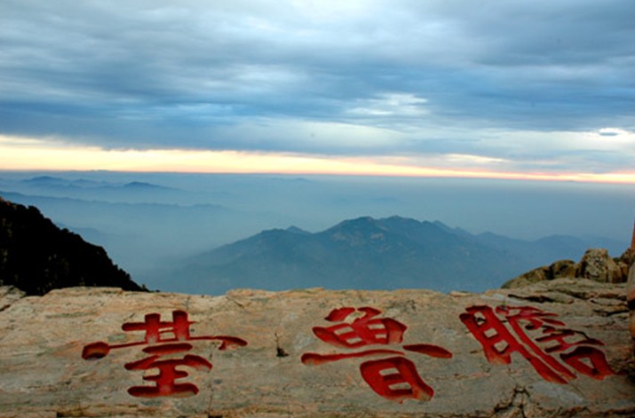 瞻魯臺位于日觀峰南側,石梁突兀,平展如臺,臺上有巨石,上刻“瞻魯臺”三大字,寓意在此可遠瞻魯國曲阜。