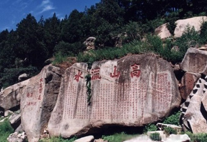 泰山經(jīng)石峪有一座高山流水亭,傳說是伯牙撫琴的地方。此地風(fēng)景恰切得詮釋了古琴曲《高山流水》的大神韻。概因此附會于伯牙與鐘子期知音的故事。
