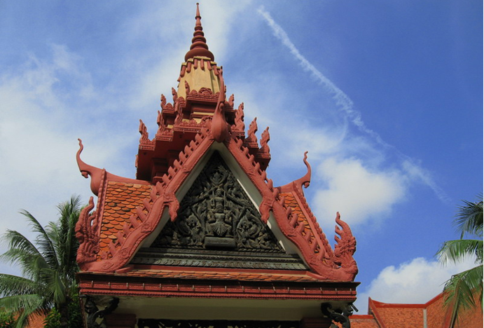 金邊國立博物館是柬埔寨最著名的博物館。在金邊舊王宮北鄰。1917年法國人G。格羅里葉設計并開始興建,1920年建成。博物館由主館和圍繞中庭的 3個陳列館組成。主館為朱紅色的高棉傳統建筑,收藏高棉民族遺留下來的印度教及佛教的石雕,主要是 6~15世紀的作品,是研究高棉雕刻發展史的重要資料。陳列有石雕像、青銅像、石碑、陶器、金屬工藝品以及19、20世紀王室的日用品和樂器等。