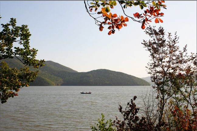 ★ 秋季:層林盡染,火紅的楓樹,桔紅的橡樹,金黃的落葉松,米黃的白樺樹,使你視線所及,處處彩色斑斕。這里被很多人認為是松花湖景色最美的地方。沿岸一個個小砬子凸出湖面,怪石林立,背襯著山坡的松林,呈現出一幅水靜、石奇、松秀的風景圖畫。