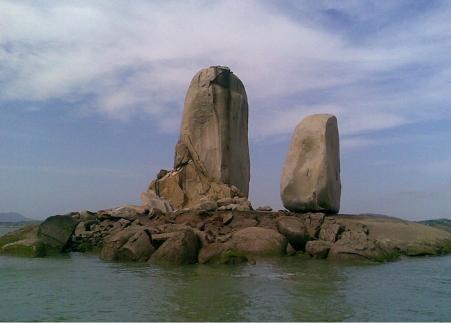 從看澳村岸邊坐渡船,十幾分鐘就到達(dá)礁石上,礁石底部是一組平坦完整的巖石。兩個石柱均由粗粒灰白色的花崗巖組成 東側(cè)的一個高達(dá)33米,胸寬9米,厚8米;西側(cè)的一個高17米,胸寬15米,厚8米。版權(quán)所有山東聊城聊之旅國際旅行社有限公司,轉(zhuǎn)載必究!兩個石柱的底部都是近似四方形體,直立在礁石上。據(jù)地質(zhì)學(xué)家考證是世界上最大的花崗巖球狀風(fēng)化海蝕柱。由于它的奇特壯觀,對游人有著強烈的震撼力和吸引力。建設(shè)部與中科院的專家稱之為:“壟斷性的世界級旅游資源。”明代旅行家陳第曾譽之為“天下奇觀”, 清朝女詩人林淑貞詩贊:“共說前朝帝子舟,雙帆偶趁此句留;料因濁世風(fēng)波險,一泊于今纜不收.