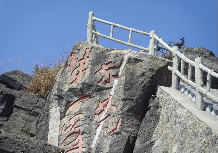 觀花樓是一個仿古建筑的亭臺,這里是觀賞銀屏牡丹的最佳位置。遺憾的是現在已經是深冬季節,銀屏牡丹也只剩下了一桿枯枝。站在亭臺看對面的懸崖上題寫著:“銀屏奇花”四個字,順著奇字看上去,大約一米之高處就是銀屏牡丹生長的地方。
