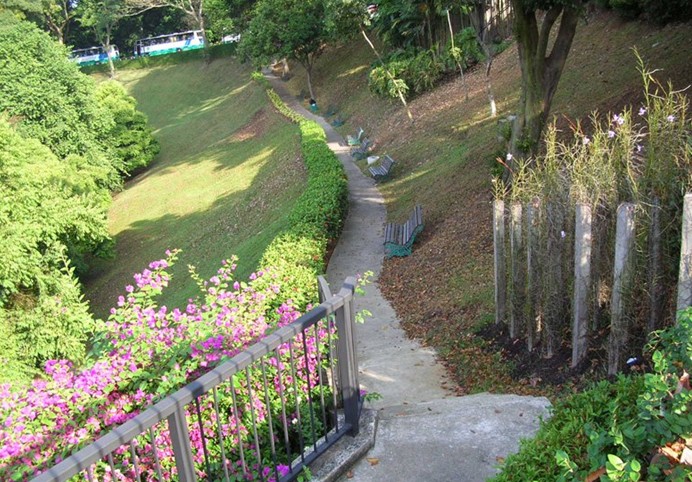 沿有三個池塘,林蔭羊腸小徑貫通各處,這里嚴禁踏車,只能步行,健身園、七個特式涼亭及兩個停車場,其中一個停車場是第二次世界大戰 ,日本 侵略者與英國 軍隊的“巴西班讓戰役”的地點。