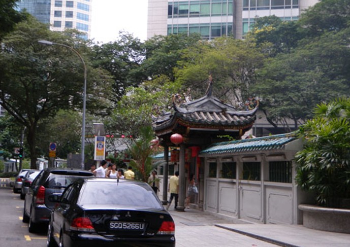 粵海清廟 (Yueh Hai Ching Temple),坐落于菲利普街,是新加坡最古老的道教寺廟之一。粵海清廟目建于1826年,初建時僅是一間簡陋的亞答屋,四周空曠,廟前是一片大海。1845年,潮僑成立了新加坡義安公司,該廟便歸義安公司所管理。1852年至1855年間,進行擴建工程。1896年又進行全面重建。該廟也由一間亞答小廟,變成水泥屋瓦,雕梁畫棟,香火旺盛的大廟。