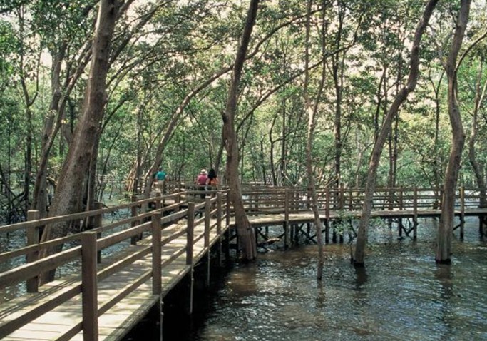 公園是由一個游人中心和三條人行道組成的。這三條人行道都有幾公里長,為了保存自然風味,它們都是由碎石細沙鋪成的,每一條路都能把游人帶到不同的風景點,如傳統養蝦池淡水池等。為了使生態環境的破壞程度降到最低點,園內所有設施,如橋梁、亭子、觀鳥屋等都用木頭建造,園里的道路也是原始的,沒鋪柏油或石板,絕大部分的花木也都是自然繁殖的。