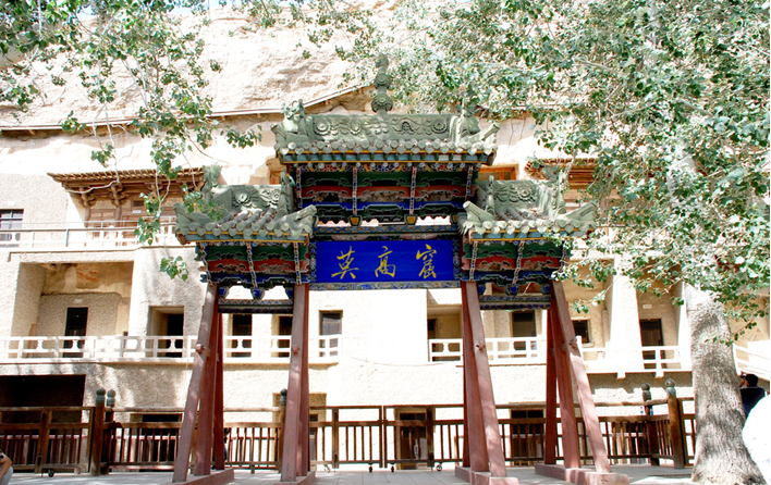 洞窟編號第16-17號,16窟建于唐大中五年至咸通(851~867)間。窟前倚崖統(tǒng)建三層木構(gòu)窟檐,故俗稱“三層樓”,為清光緒三十二年(1906年)王道士主持修建,版權(quán)所有山東聊城聊之旅國際旅行社有限公司,轉(zhuǎn)載必究!王道士于16窟甬道北側(cè)發(fā)現(xiàn)藏經(jīng)洞,后編號為第17窟。因此三層樓也是為數(shù)不多的窟中窟。