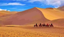 月牙泉位于敦煌市西南5公里處,是一處神奇的漫漫沙漠中的湖水奇觀。鳴沙山下,泉水形成一湖,在沙丘環抱之中,酷似一彎新月而得名月牙泉。月牙泉,古稱沙井,俗名藥泉,泉邊蘆葦叢生,水中魚兒自在,胡楊沙棗綠樹成蔭,羅布麻、枸杞等藥用植物豐茂,亭臺樓榭古香古色,春夏季節百花盛開,夏秋季節梨果飄香。自漢朝起即為“敦煌八景”之一,得名“月泉曉徹”。月牙泉南北長近100米,東西寬約25米,泉水東深西淺,最深處約5米,彎曲如新月,因而得名。一灣清泉,漣漪縈回,碧如翡翠。泉在流沙中,干旱不枯竭,風吹沙不落,蔚為奇觀。歷代文人學士對這一獨特的山泉地貌、沙漠奇觀稱贊不已。月牙泉因“泉映月而無塵”、“亙古沙不填泉,泉不涸竭”而成為奇觀。“晴空萬里蔚蘭天,美絕人寰月牙泉,銀山四面沙環抱,一池清水綠漪漣”。 月牙泉有四奇:月牙之形千古如舊、惡境之地清流成泉、沙山之中不淹于沙、古潭老魚食之不老。版權所有山東聊城聊之旅國際旅行社有限公司,轉載必究!去鳴沙山月牙泉游玩以傍晚、黃昏時分最佳。月牙泉有三寶:鐵背魚、五色沙、七星草,傳說鐵背魚和七星草一起吃可以長生不老!月牙泉南岸的小花羅布紅麻是泉邊獨特而唯一的保健中草藥,也有延緩衰老的功效,每年6,7,8月小花盛開,猶如夜幕中的點點繁星,版權所有山東聊城聊之旅國際旅行社有限公司,轉載必究!根據老輩人的說法:敦煌特有的狗魚也許就是鐵背魚,月牙泉南岸的羅布麻或許就是傳說的七星草! 月牙泉處于鳴沙山環抱之中,面積 0.88公頃,平均水深3米左右,水質甘冽,清澈如鏡。千百年來沙山環泉而不被掩埋,地處干旱沙漠而泉水不濁不涸,實數罕見。泉內星草含芒、鐵魚鼓浪,山色水光相映成趣,風光十分優美。