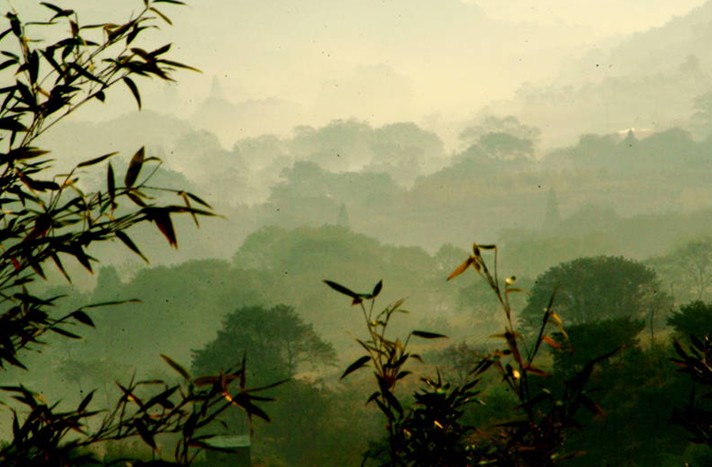 海陽云頂自然風景旅游區位于海陽市盤石店鎮大莊村西側,招虎山北麓。這里群山環抱,古樹參天,空氣清新,泉多水清,翠竹叢生,周圍4800畝山嵐至今保持著良好的生態環境,近千種動植物生機勃勃。尤其令人驚嘆的是這里竟然生長著500余畝郁郁蔥蔥的竹子。據林業專家稱,這片江北最大的竹林,起源于何時已無從考究。但在北緯37º地區能有如此規模的竹林,舉世罕見。