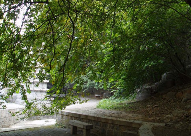 該寺是冠世榴園風(fēng)景區(qū)自東向西的第一個(gè)旅游景點(diǎn),俗稱“青檀秋色”,為古峰縣八景之一。據(jù)《峰縣志》記載,版權(quán)所有山東聊城聊之旅國際旅行社有限公司,轉(zhuǎn)載必究!唐朝以前名“云峰寺”。唐時(shí)青檀樹遍植山谷,遮天蔽日,故改名為“青檀寺”。從唐代到宋、元時(shí)期,寺廟香火日盛,谷中置寺廟多處,故有僧屋如巢之說。到明、清時(shí)期,此地為文人墨客,達(dá)官貴人游玩勝地。清末民初,寺毀于兵火。現(xiàn)青檀寺為1985年重建。門坊為三門四柱雙垂飛檐斗拱,木質(zhì)結(jié)構(gòu)與鋼筋水泥混合結(jié)構(gòu)的仿古建筑。門上方一黑色大理石鑲嵌橫匾,題“青檀秋色”四字,為浙江省副省長劉亦夫書。門坊內(nèi)是長約1.5公里的狹谷,谷內(nèi)樹齡在千年以上青檀樹有36棵,百年樹齡的不計(jì)其數(shù)。狹谷盡頭即為青檀寺。廟門匾額“青檀寺”三個(gè)字,為書法家舒同手筆。寺院占地面積1050平方米,建筑面積330平方米。主體建筑為大雄寶殿五間,飛檐斗拱,殿內(nèi)供奉三世佛。殿前院內(nèi)有一株銀杏樹,樹齡逾千年,至今干壯葉茂。殿前有一龍窯泉,水從大殿基地流出。西有三間配房,東有長亭。亭旁的東山巖壁上有文峰山人題寫的摩崖石刻“忘歸”、“龍”二處。大殿后石壁上刻有“還我河山”四個(gè)大字,上有岳飛養(yǎng)眼樓,相傳宋代民族英雄岳飛因患眼疾曾在此養(yǎng)病,宋時(shí)建樓紀(jì)念,毀于“文化大革命”時(shí)期。1985年重建,建筑面積為112平方米,樓內(nèi)塑有岳飛坐像。
