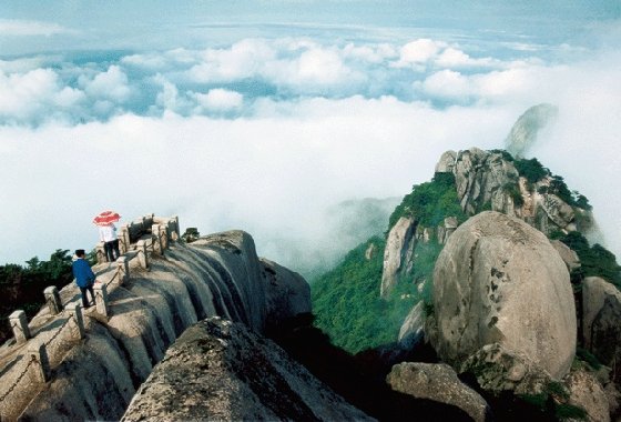 天柱峰,海拔1489.8米。它凌空聳立,一柱擎天,渾身石骨,嶙峋奇絕,瑰偉秀麗,如柱、如錐、如炬、如劍、如樓臺,又如生花妙筆,幫有“五岳歸來不看山,黃山歸來不看岳,天柱歸來不看峰”之贊譽!唐代大詩人李白路過宿松長江江面時,望見天柱峰的雄奇壯麗,放聲高歌:“奇峰出奇云,秀木含秀氣。清冥皖公山,巉絕稱人意。……”白居易也曾詠嘆:“天柱一峰擎日月,洞門千仞鎖云雷”。宋朱熹大發感嘆:“屹然天一柱,雄鎮翰維東。版權所有聊城聊之旅旅行社有限公司,轉載必究!只說乾坤大,誰知立極功。”明李庚也贊曰:“巍然天柱峰,峻拔插天表。登躋猶未半,身已在蓬島。憑虛舉鸞鶴,舉步煙云繞。天下有奇山,爭似此山好。”