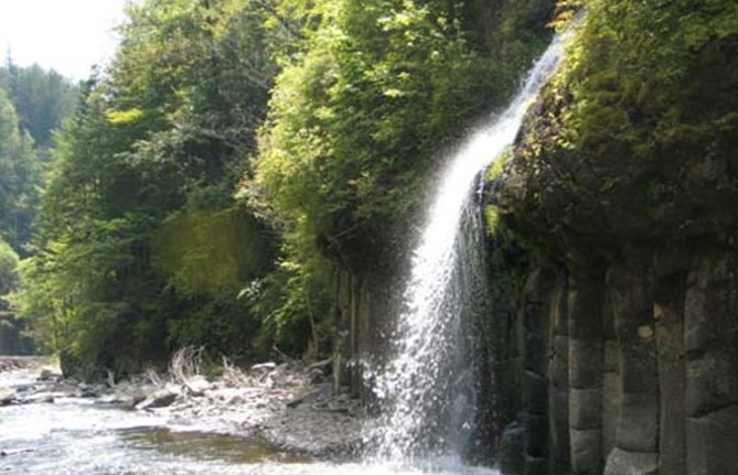 吊水壺瀑布景區距離三角龍灣15分鐘的車程,與金龍頂子山相依為伴。吊水壺瀑布是火山爆發后,河床受張力斷迭形成的瀑布,寬約10米,落差7米。更別致的是另有一處水流好似噴泉,自崖中間凌空噴下,象茶壺中的水從壺嘴中倒出來一樣,故當地人稱其為“吊水壺”。吊水壺瀑布景致壯觀秀麗,流水清澈見底,冬天水不封冰,夏日冰涼刺骨。炎熱的盛夏時節前去,一定會看到水珠飛濺、霧氣蒙蒙的景象,一陣陣涼氣襲來,沁人心脾,可謂避暑度夏的最好去處了。