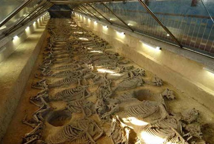 據專家考證,殉馬多數是 6--7 歲口的壯年馬,是人為處死后,按照一定的葬式排列而成,馬分兩行,排列整齊,昂首側臥,四足蜷曲,呈臨戰姿態,好像只要聽到戰鼓擂動還會四蹄騰空。