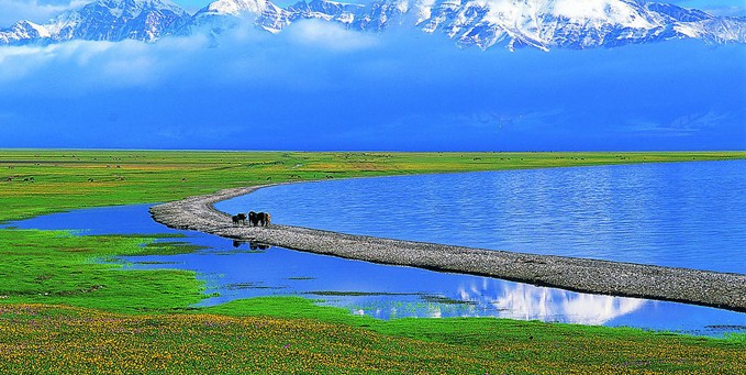 巴里坤是大草原。但巴里坤草原不象內(nèi)蒙古的草原那樣一望無際,可以看到草天相接的地平線。而巴里坤是盆地,極目遠(yuǎn)望,四周與藍(lán)天相接的是連綿不斷的山巔。這些山都屬于東天山。版權(quán)所有山東聊城聊之旅國際旅行社有限公司,轉(zhuǎn)載必究!特別是南山尤為高大雄偉,山頂有終年不化的積雪,山腰是四季常青的林帶。山頂積雪融化以后,有的順著山溝流了下來,不到山口就不見了蹤影,全都鉆到地下去了。而有的則就地滲入巖縫。俗話說,“山有多高,有多高”確實(shí)不假。因?yàn)樵谏缴系教幙梢砸姷讲床吹纳饺O奶欤葚S美的高山草甸草場則是牲畜避暑的絕好去處。為數(shù)不多的幾條大溝里的水可以流出溝口,便成了山前沖擊扇平原上農(nóng)田的灌溉用水。在沖擊扇平原的下面,就是地下水溢出帶了。巴里坤盆地不大,南北也就是三四十公里。因此南北兩山的地下水溢出帶集中在盆地中間,有的地方也有十幾公里寬,這里無數(shù)泉眼的泉水竟然匯聚出一條條小河,自東向西流入到巴里坤湖。這十幾里寬的地方植被很好,形成了很好的草甸。古詩《疏勒歌》中的“天蒼蒼,野茫茫,風(fēng)吹草低見牛羊”,據(jù)說就寫的是巴里坤。古人也稱這里是“甘露川”。現(xiàn)在人們干脆就叫“草湖”:草,牧草,湖,水也,既有草有水的地方。草湖與巴里坤人的生存息息相關(guān)。