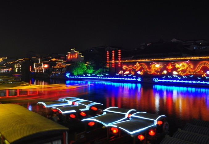 秦淮風光,以燈船最為著名。河上之船一律彩燈懸掛,游秦淮河之人,以必乘燈船為快。由朱自清名篇《槳聲燈影里的秦淮河》,可領略燈船豐采一二。
