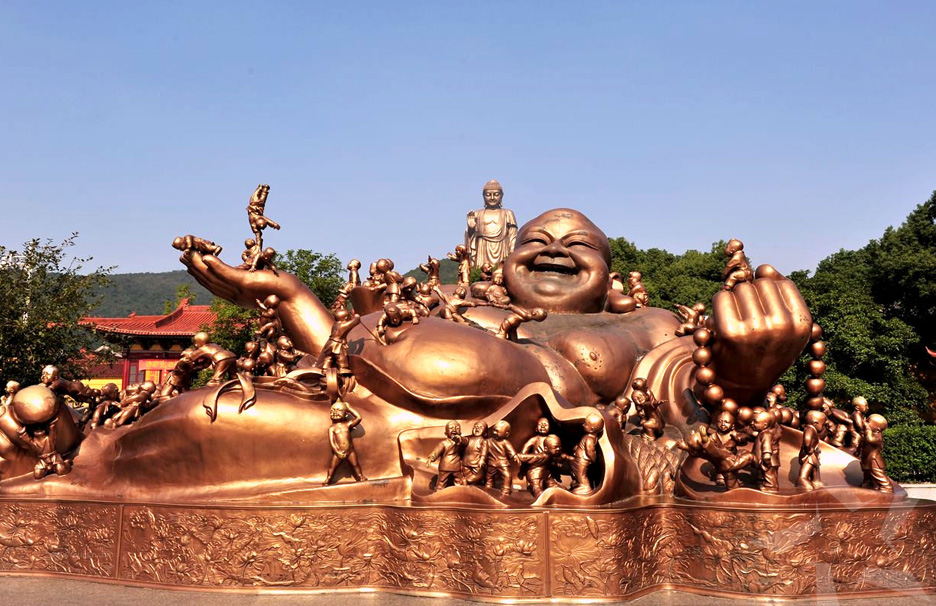 天下第一掌位于佛手廣場行道的左側,是按靈山大佛右手復制,且形狀大小完全一樣的銅質手掌,它的總高度為十一點七米,寬五點五米,手指直徑一米,總重量達十三噸,掌心的千輻輪,直徑達二米。天下第一掌是靈山大佛景區香火最旺的景點之一,當初設置這只巨掌,一是為了讓游客更直觀地感受八十八米靈山大佛的宏偉,另一方面是由于靈山大佛太高大,讓香客游客難以親近,所以將右手獨立,供大家瞻仰、撫摸,在靈山,有“摸佛手有福氣,摸佛腳有靈氣”的說法。這是因為這只右手的印上是“施無畏印”,佛教的說法是寓意除卻眾生痛苦,撫慰眾生心靈,佛掌心的千輻輪,是佛的三十二相之一,喻示***長轉的意思,佛手指之間,有膜相連,象水禽足趾的蹼一樣,稱為手足縵網相,也是佛的三十二相之一。