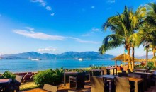 “龍舸度迷津發大慈云只要眾生回首,山門開覺路入歡喜地更進十住安心”。由康有為所書,首字嵌入廟名,并表達出佛寺渡人的特色。