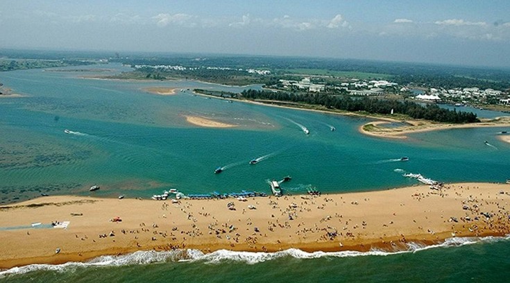 玉帶灘是一條自然形成的地形狹長的沙灘半島,位于海南博鰲,外側(cè)南海煙波浩淼一望無際,內(nèi)側(cè)萬泉河、沙美內(nèi)海湖光山色,內(nèi)外相映,構(gòu)成了一幅奇異的景觀。玉帶灘全長8.5公里,地形地貌酷似澳大利亞的黃金海岸和墨西哥的坎昆,在亞洲區(qū)可謂僅此獨有。