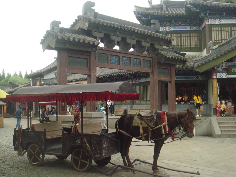 首先進入眼簾的是三國城門樓。高大的三國景點城門樓上,旗幡招展,兩尊漢代神獸:天祿和辟邪矗立于廣場,城門樓原是《三國演義》中諸葛亮智設空城計,退了司馬懿幾十萬大軍的拍攝地。